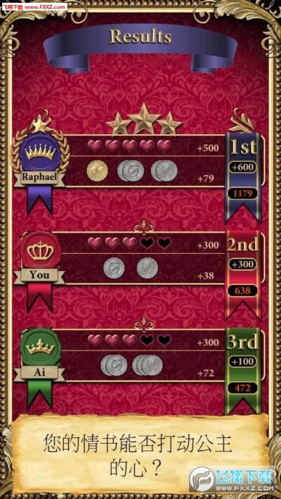 2、游戏一共支持4位玩家在线宫廷玩,但游戏最终只有一位追求者能获得公主的芳心;