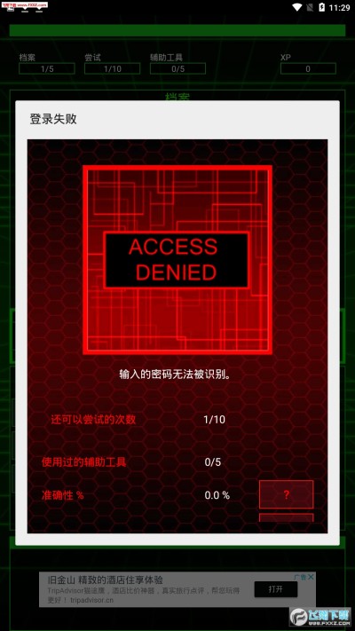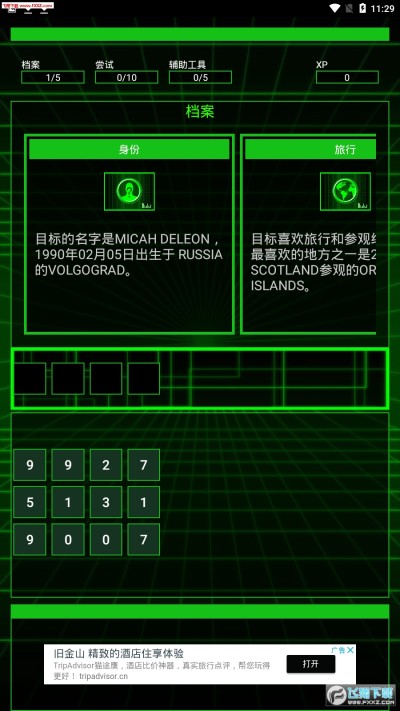 想成为像黑客帝国里尼奥那样在虚拟世界为所欲为的男人吗?不要着急,先试试这款游戏,看你有没有破译密码的天赋,不管步骤多么花哨,黑客最终的目的只是设法破解你的密码,有了密码才能为所欲为。通过游戏内提供的有限线索,比如目标的出生年月,目标的职业或是一些蛛丝马迹,找出目标设置的正确密码