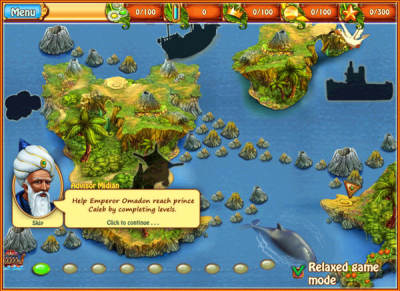 皇家之岛2:探寻新大陆是bigfish制作发行的最新消除类游戏,这一次皇帝奥曼丹为寻找自己的王子而踏上征程。游戏在画面风格上继承了前作传统,背景音乐依旧休闲轻松,游戏的玩法简单和许多同类作品类似。不过本作中包含了大量的成就等待玩家达成,各种独特的奖励小工具增加了游戏的许多乐趣。