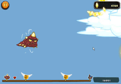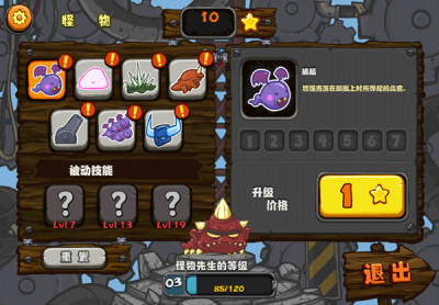 首先我们选择好力度和角度来让小怪兽飞行,然后尽量利用路上的各种东西来到达更远的地方,通过这样来获得经验和金钱,然后用金钱可以升级发射器,同时经验到达一定程度可以使等级提升,活动技能点,我们要用这些技能点来升级各种选项。