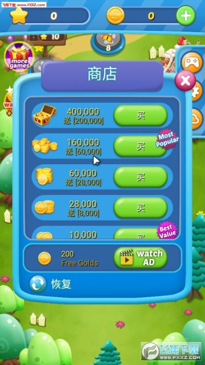 一个简单的益智游戏,匹配相同颜色的3个相同的糖果。