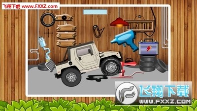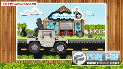 采用卡通的画面,适合给孩子玩,修理旧轮胎,让孩子了解汽车补胎的经过。