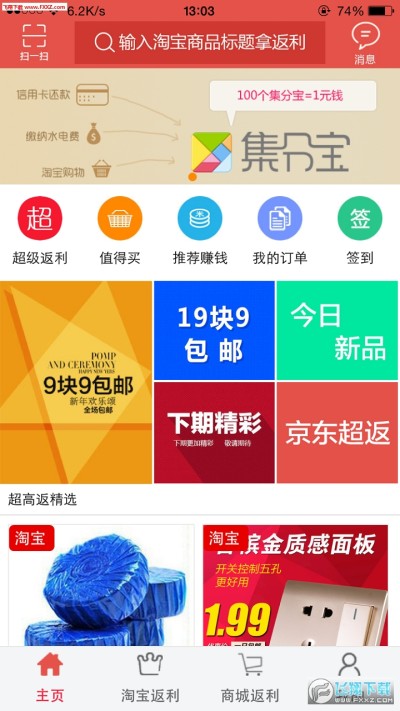 1、9块9包邮:精选商品,低价超值,9块9包邮还返利!