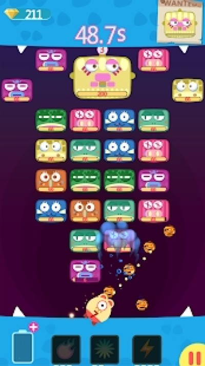 滑动并发射球以打破怪物砖块。