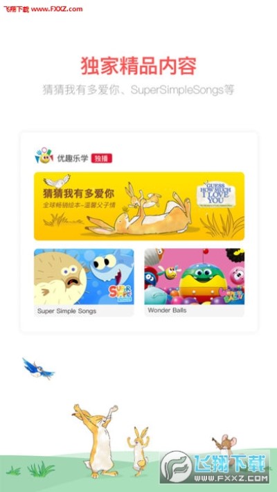• 独家播放风靡全球的Super Simple、猜猜我有多爱你、奥趣多、奇妙球家族等精品启蒙动画。