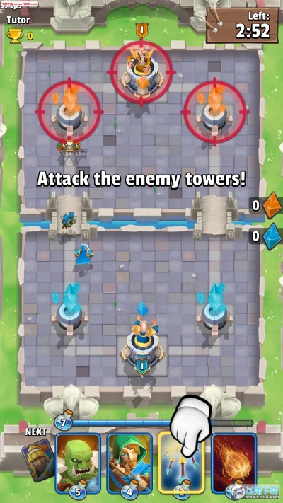 与魔法师,一些水晶塔和一些战斗部队的主要塔是唯一的防御你必须与你的敌人发生冲突,并坚决控制“皇家竞技场”。 部署你的战斗部队并施展你的法术来击败敌方战斗力!