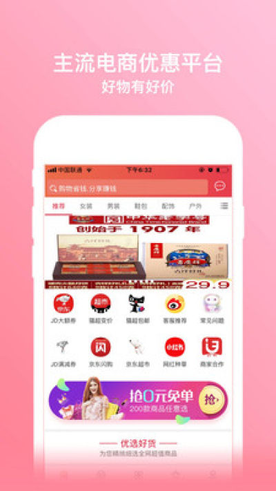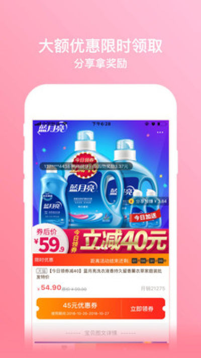 小白优惠帮App是当下流行的社交优惠导购平台。用户通过领取优惠券折扣,以促销的价格购买相同的商品,分享还可获得分享商品奖励、成交奖励。
