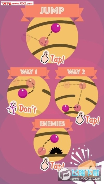 控制一个沿圆圈移动的字符。从一个圆圈跳到另一个圆圈,并试图到达中心。相信你的反应速度和注意力在这个Android游戏中。屏幕上有很多圆圈,每一个都比前一个小。在圆圈上有间隙,你可以通过这些缝隙向中心移动。然而,有一些危险沿着圆圈移动,例如锋利的圆锯。你必须在适当的时候点击屏幕,让角色跳到圆圈上,让每一个时间都变深。