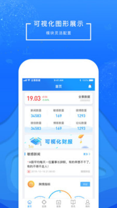 全景视窗APP是一款金融大数据产品,依托自主研发的搜索引擎和文本挖掘技术以及全景网强大的数据资源,融合海量多维度信息,统计及分析后呈现给用户。