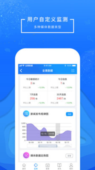 [监测]用户可自定义监测公司、产品、人物、监管机构、竞争对手等标的,同时提供多样化资讯信息、可定制化专项、可视化财报、司法文书预警等多元化数据服务,实现对各类型主体360度数据监测服务。