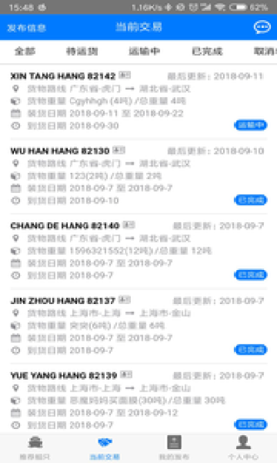 托运人信息认证: 货物托运人必须经过实名认证才能进行信息发布,分为个人认证和企业认证,保证认证人的信息真实性,做到后期有问题信息可查;