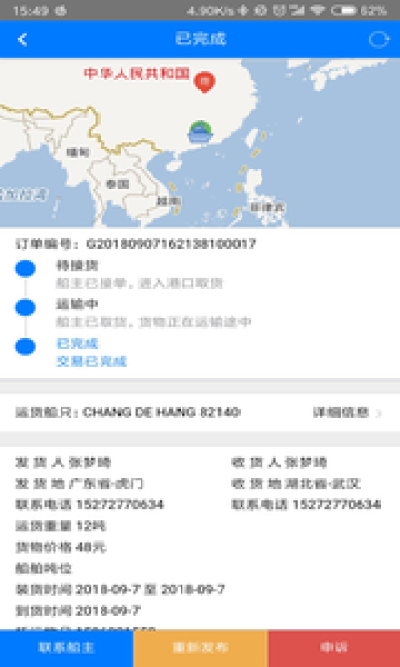 船舶实时动态: 在船只开始接货后,会定位接单船只手机位置,保证运输过程跟进;