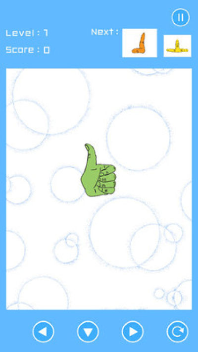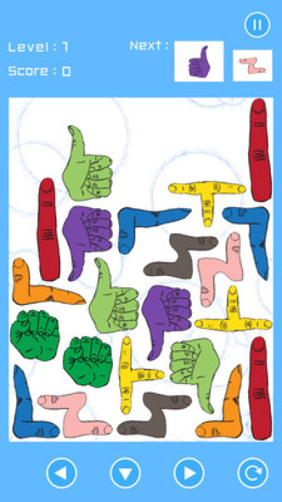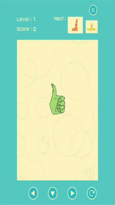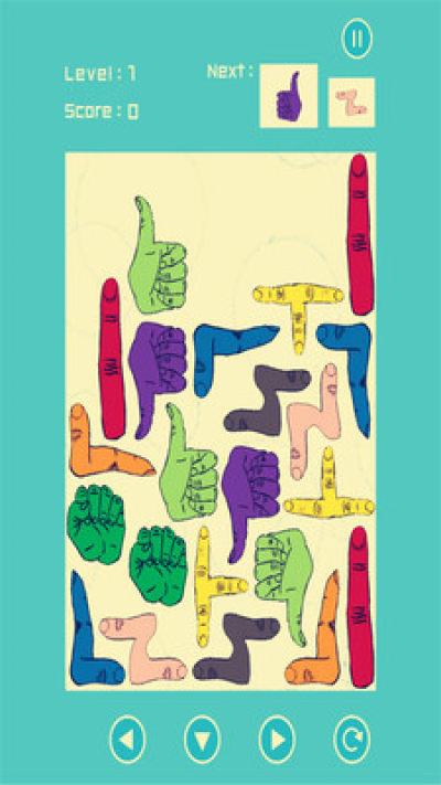 这是一款大家都玩过的俄罗斯方块改编而来的手指俄罗斯方块,游戏消除的不再是方块物而且手指形状给消灭掉,游戏中玩家需要根据手指的形状来将手指放到适当的地方,游戏还有很有趣的背景音乐,感兴趣的朋友赶紧来下载吧!