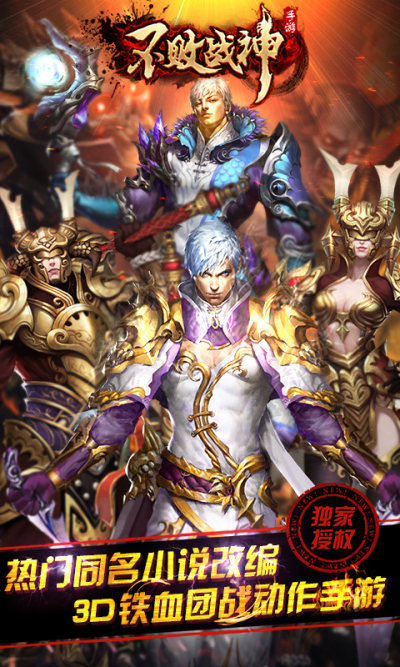 《不败战神》手机游戏由同名人气网络小说改编而来。本作100%还原原著,采用自主研发的3D引擎,完美展现精美的场景和精致的人物。战斗系统运用大量动作元素,支持同屏团战pk,还原真实触感,带给玩家爽快的打击体验和强烈的视觉冲击。