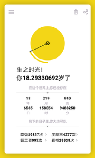 1、生之时光app记录下你出生的日期,你的余生所拥有的时光将记录在这里;