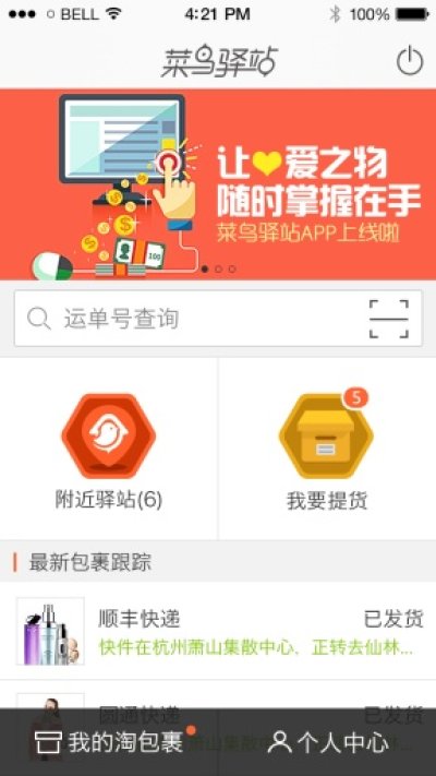 菜鸟驿站(原天猫服务站)官方客户端,为您提供淘宝、天猫所有包裹物流自动跟踪,免费代收包裹驿站查询,包裹到达驿站信息提醒等服务,同时提供物流查询服务,可以查询主流快递公司包裹,是淘宝、天猫卖家、买家物流综合信息和服务查询的首选平台。