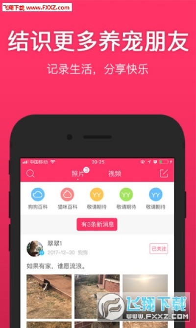 照片板块:让用户和同城人一起分享日常养宠照片和生活状况。如果宠物丢了,可以在照片板块发布信息,让喜欢宠物的朋友也一起帮助寻找宠物。