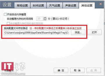 2、也可以手动修改一下注册表:HKEY_CURRENT_USER\Software\RuanMei\MagicTray 下的这个键值 ConfigPath,改成自己的文件夹即可。