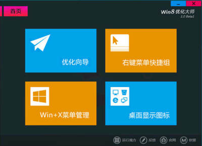 优化向导包含了Win8安全加固、Win8个性设置、Win8网络优化、Win8开机加速、Win8易用性改善五项经典功能,把Win8调节至最佳使用状态。