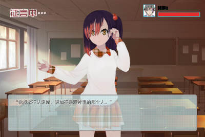 辩论及选项:通过找出对方的主张里面与已知证据或者证词矛盾的部分提出反驳,成功后剧情会得到推进,失败之后会损失一定的精神力,精神力扣光之后会导致Game Over。