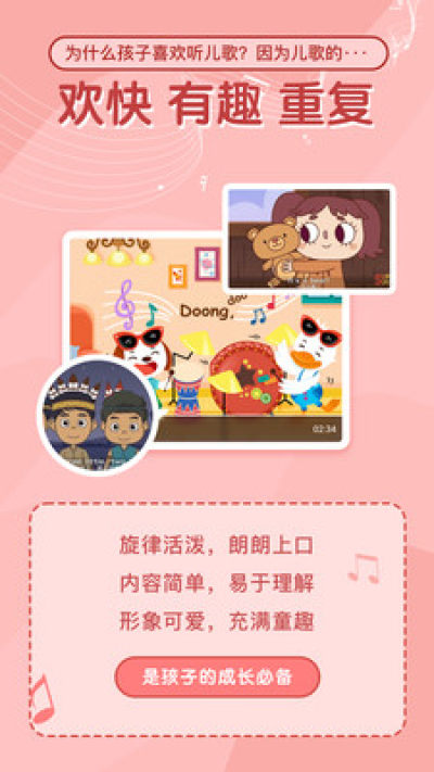 3.循环播放:视频默认循环播放,锁屏状态也能听儿歌,给宝贝专属的家庭背景声