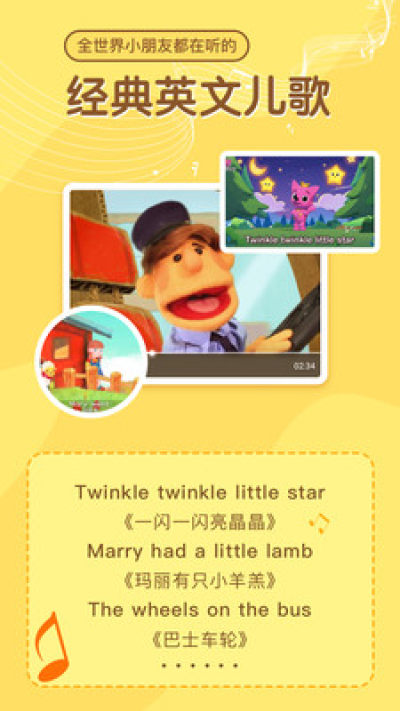 • 100%原版英文儿歌视频,优质动画,纯正发音,调动视觉听觉双重感官。