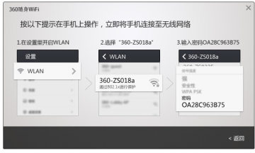 第4步:在手机上将WiFi设置打开,选择360-xxxx,输入密码连接