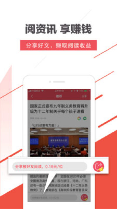 《阅资讯》app是一款阅读赚钱的新闻资讯平台,为用户带来丰富精彩的前沿资讯,同时用户可以通过阅读赚钱,而且用户分享可以赚钱更高额度的报酬;需要的话就赶紧下载体验吧!