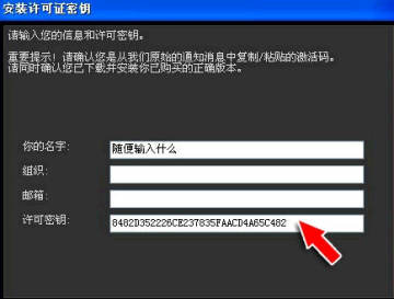 回到Photoshop程序中,输入【你的名字】并将刚才的注册码粘贴到【许可密钥】中去。