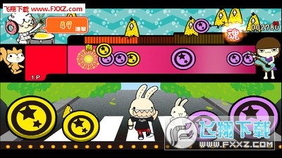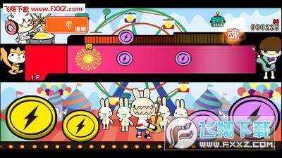 游戏玩法类似太鼓达人,跟随音乐节奏敲击正确的按键,有不同的音乐和难度可以选择。