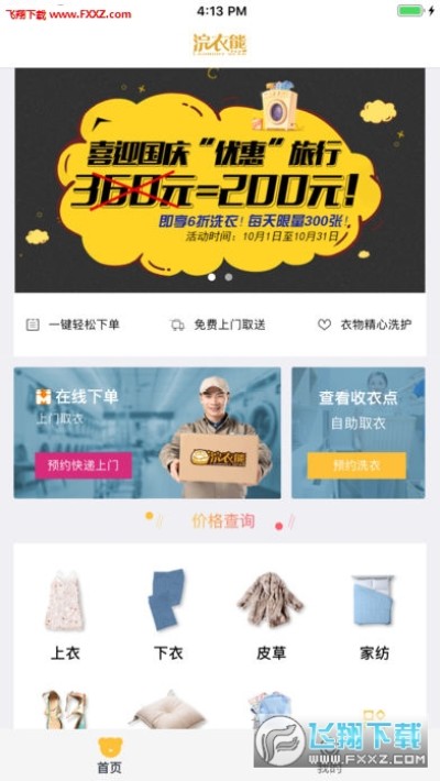浣衣熊APP是一款非常方便快捷的洗衣应用,用户在线上下单,就有专人上门取走,洗好了还会再送回来哦,为用户提供了极大的便利。浣衣熊APP还经常有特价1元洗衣活动,如此好用的洗衣APP,快下载体验体验吧。