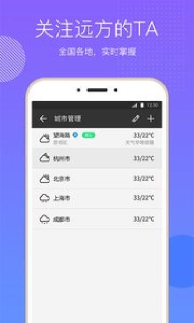 支持全国多个城市及地区天气查询,采用逐小时天气预报实时监测阴晴雨雪及空气质量,雾霾天不出门。