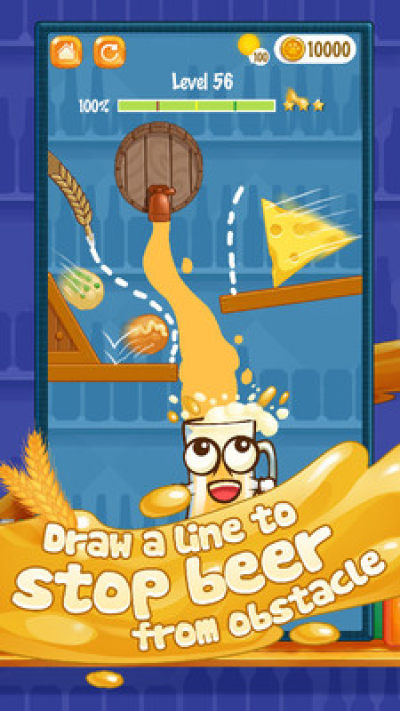 这款游戏有着数千个级别的难度,几十种不同的障碍,适合所有年龄段的用户玩的一款游戏,使啤酒顺利的落入水杯当中,快来下载挑战吧。