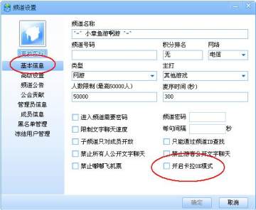 然后在弹出的“频道信息”中可以看到“基本信息”界面的最底下有“开启卡拉OK模式”的选项。(如图)