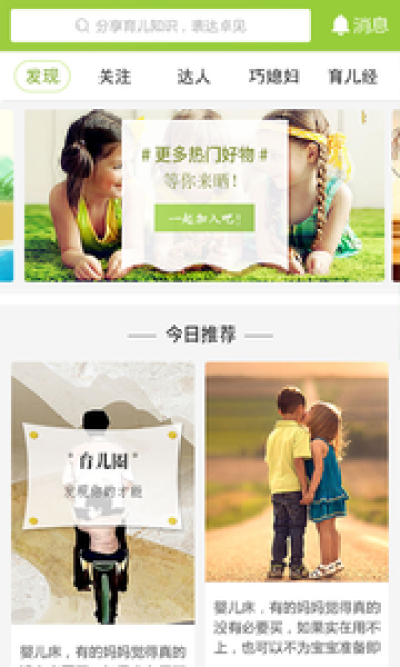 育儿家APP,致力于服务社区内0-6岁儿童的早期发展,并提供家庭教育指导和解决方案,同时在教育教学、课程体系、店面管理、人才储备等方面打造全生态产业链,让未来的宝宝、家长、幼教老师选择更优质的育儿共享社区服务体系。
