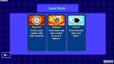4、游戏模式将分为三种,一种是训练模式,你可以在这里开发人物的连招或者熟悉他的技能,另外两种则是则是操作模式下的格斗和自动格斗模式;而在这些模式中,最多可支持8为角色同时在一个场景中进行乱斗。