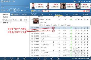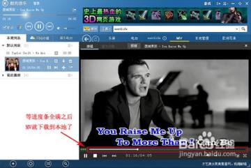点击一下“影带”式图标,右边的MV窗口中会自动播放MV歌曲,播放完毕,这首MV歌曲则会自动缓存到我们的电脑上。