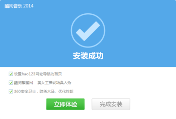 酷狗音乐2014安装完成之后,如上面界面所示,不需要的勾选插件取消选中即可。