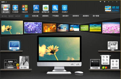 大家以为酷屏只是一款给用户变换桌面壁纸的软件吗,那么你就错啦!酷屏不仅集成近海量的XP电脑主题、Win7主题、桌面壁纸、电脑登陆界面、指针、桌面屏保、文件夹图标……等桌面美化资源,酷屏还提供:CMD查询、计算机、视频播放器、图片播放器、浏览器、桌面清理、桌面事件等精美桌面应用,酷屏使您的Windows桌面更加实用和多彩。