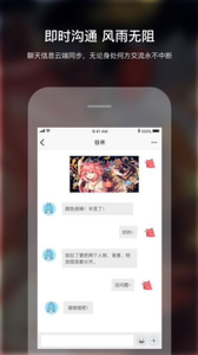 云端同步:随时随地查看您与画师的全部沟通记录,云端存储画师的稿件进度,再不必担心记录损毁丢失。