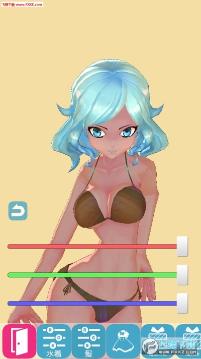 2、3D场景,默认包括海滩和家两种场景,服装造型主要有三套,当然玩家可以召唤出更多的场景和服装;