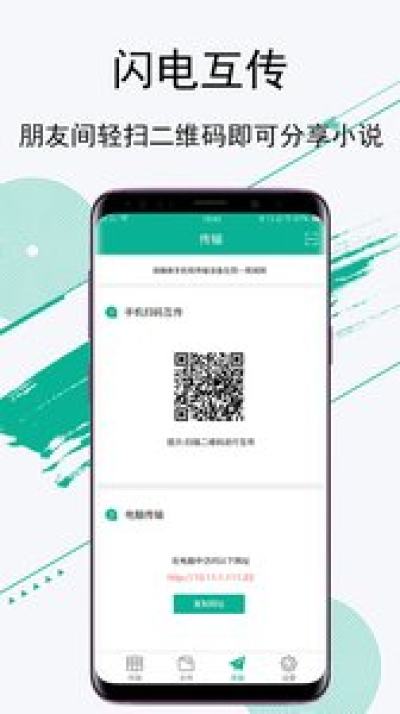 【文件互传】支持手机与手机间的无线传输,朋友间扫描二维码,即可轻松完成书籍、小说、有声读物的分享。同时,支持电脑与手机间的无线传输,打开电脑浏览器,选中目标文件,点击发送即可。