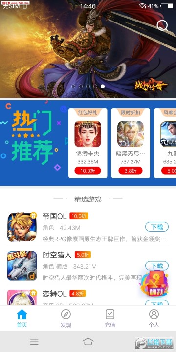 狐游app最新版是专门为游戏玩家推出的福利平台,网游玩家一定不要错过了,狐游主要经营的是网游,为用户带来了超多的福利,还可以一键领取,以及充值折扣等,而且平台的游戏超级多,涵盖了市面上百分之九十的游戏,喜欢的朋友赶紧下载吧。