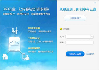 360云盘是360公司推出的网络硬盘,用户可以将各种数据文件都放在其中以便共享和储存。云盘拥有15G的超大免费空间,能够存放30000份工作文档,7500张亲人的照片,或者3000首你最爱的歌曲,从此海量内容,时时与你相伴。