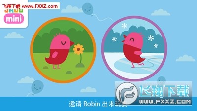 游戏开始于罗宾的鸟舍。按下门铃,邀请你的小鸟伙伴出来玩吧。一起到魔法森林探险:翱翔于天际、在池塘中嬉戏、跳支舞、结交些新朋友。开放式的游戏过程,惊喜不断的动画情节,一定会逗得你的小宝贝咯咯直笑。
