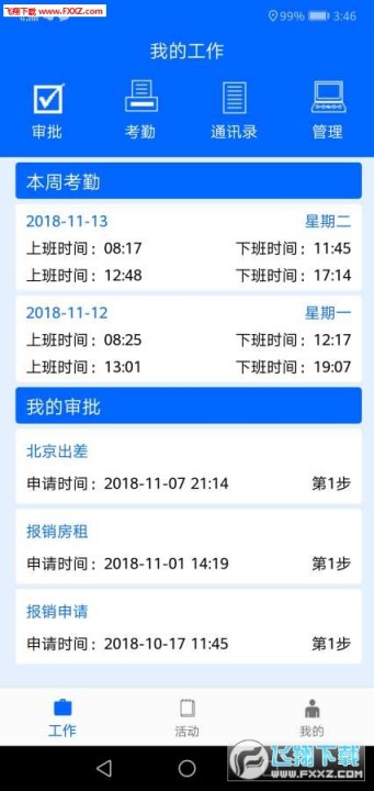 App提供了GPS考勤、事务审批和各种活动组织管理三项功能。 移动审批、GPS考勤和活动组织管理专家