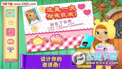 疯狂枕头大战!用枕头爆打你的闺蜜,玩个痛快!策划的你梦想中睡衣派对吧!装点邀请函,设计你自己的睡衣,制作美味的松饼,玩糖果猎人游戏,以及更多活动!