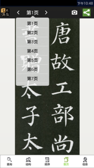 17,单字大图页可以拍下单字练习或者选择图片与原碑帖叠加对比,照片可旋转可调透明度;