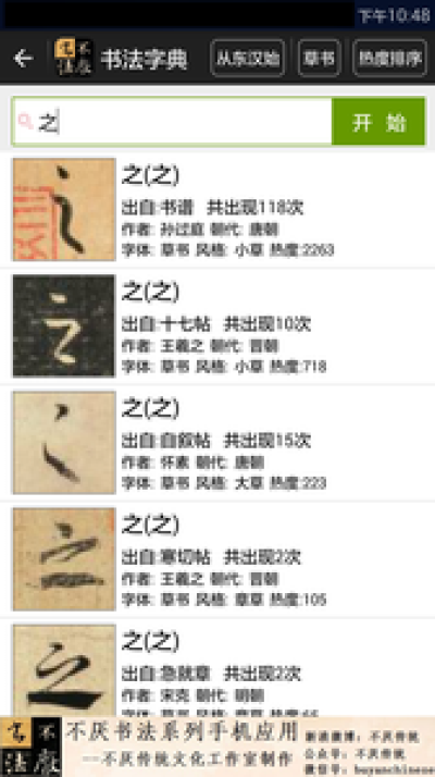 21,信息页提供“书法字典”功能;