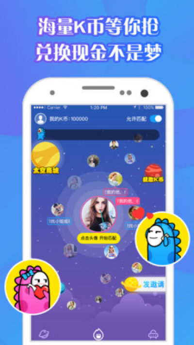 --1对1语音聊天1s快速匹配对的人,还有超好玩的变声功能,萌妹子、小姐姐、小哥哥们都在玩哦。